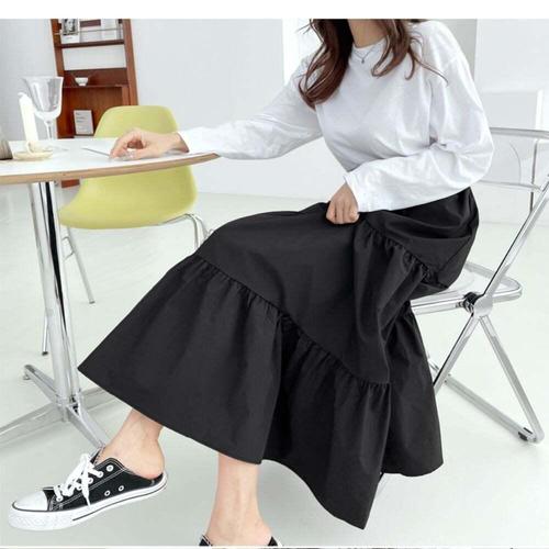 [셀럽하우스]밴딩치마 QSOE7993 롱스커트 빅사이즈 캉캉 여자 블랙 여름 3단