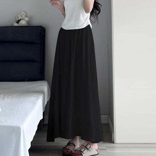 [셀럽하우스]블랙 BNAG2822 유니크 밴딩 롱 스커트 봄 여름 가을 A라인 치마