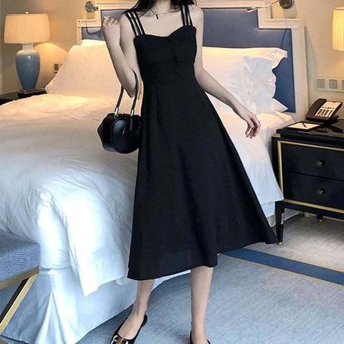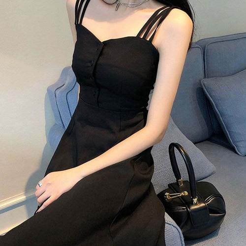 [셀럽하우스]여름 DQFS2712 쓰리 끈나시 블랙 롱 원피스 캐주얼 여자 치마