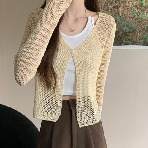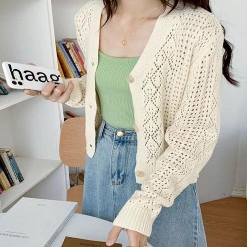 [엄지척]니트 아우터 여름 여성용 가디건 브이넥 펀칭 캐주얼_19874308_667501