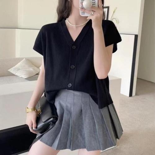 [엄지척]여성 얇은 여름아우터 캡소매 브이넥 반팔 니트가디건_19799223_667501
