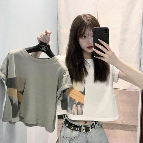 [엄지척]그래픽 아트 여성 크롭 숏 여름 반팔_19626332_667501