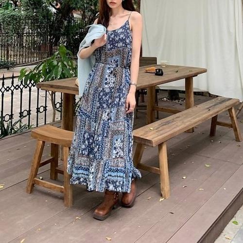 [다잇템]여자 썸머 바캉스룩 에스닉 플레어 롱원피스