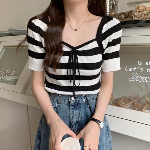 [에이치플러스몰]크롭 티셔츠 반팔티 니트 여성티셔츠 여름티셔츠 여름
