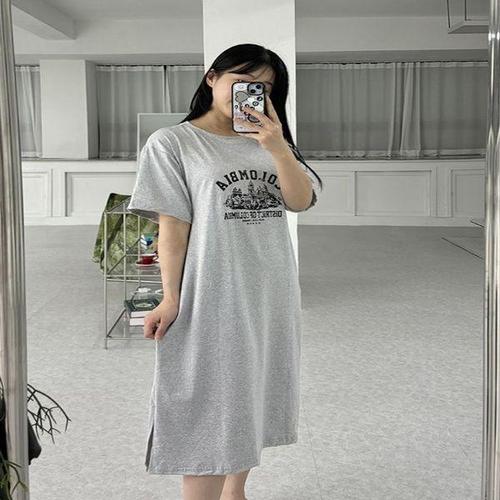 [에이치플러스몰]여름 여자 프린팅 오버핏 반팔원피스 홈웨어