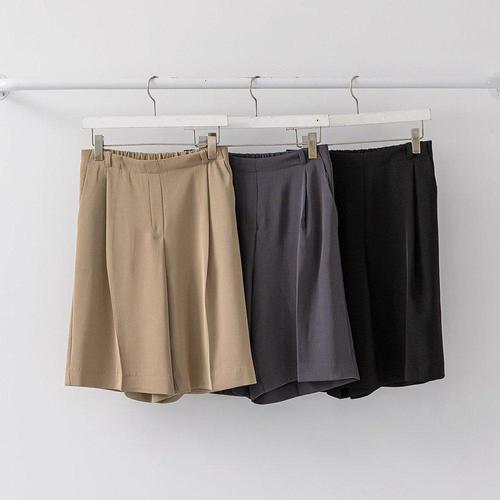[옷자락]여성 여름 출근용 와이드 핀턱 버뮤다 반바지 스판 쿨