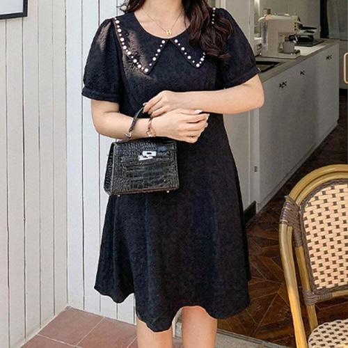 [셀럽하우스]여자 VMGB0959 빅사이즈 봄여름 하객 반팔 카라넥 검정원피스