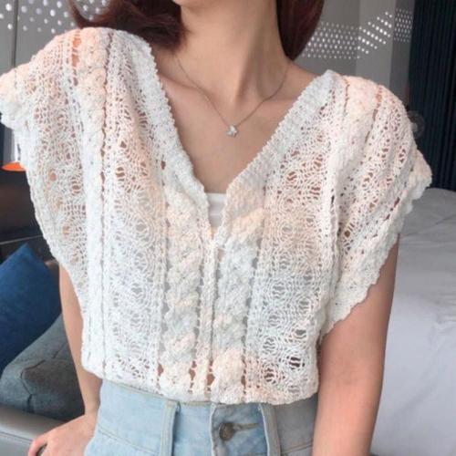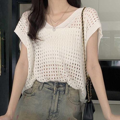 [에이치플러스몰]여성 펀칭 니트 조끼 여름 브이넥 그물 뜨개 베스트