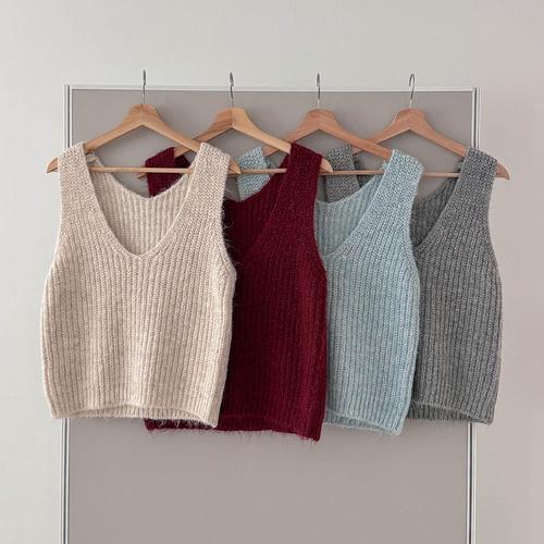 베이직 여자니트 여름니트 브이 베스트 썸머 브 WFKOIXO