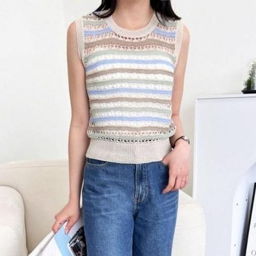 [엄지척]여자 여름 펀칭 스트라이프 단가라 니트 나시 조끼_19611096_667501