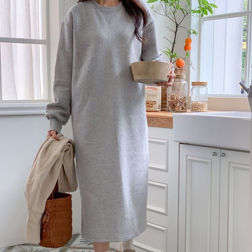 플러리싱 / 심플 면혼방 기모 무지 롱 원피스 플러리싱