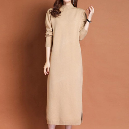 [브리치] / NO675 심플 무지 반폴라 긴팔 니트 원피스