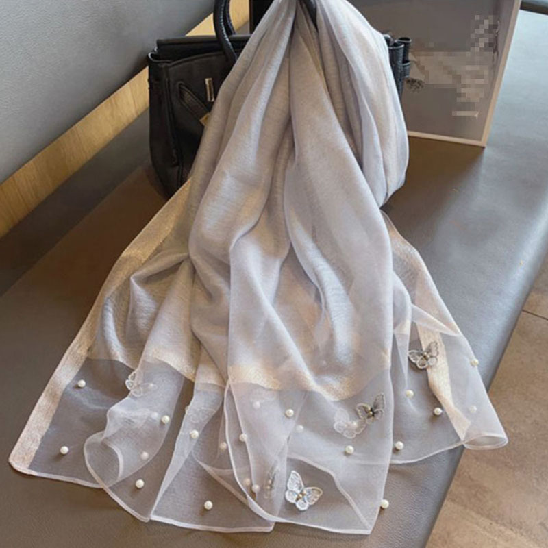TEMU 여성 사계절용 진주 자수 나비 롱스카프 빅사이즈 머플러 간절기 무지 숄 비치용 스카프 예쁜 머플러