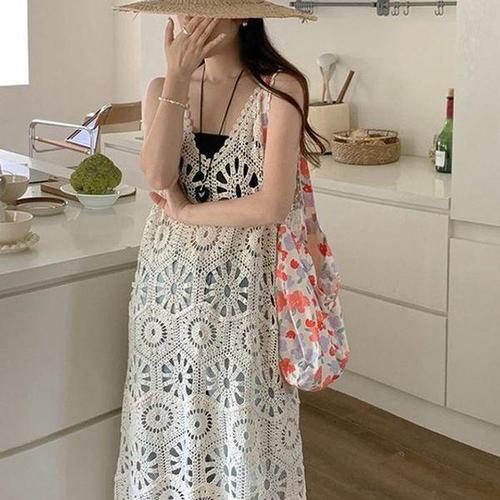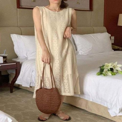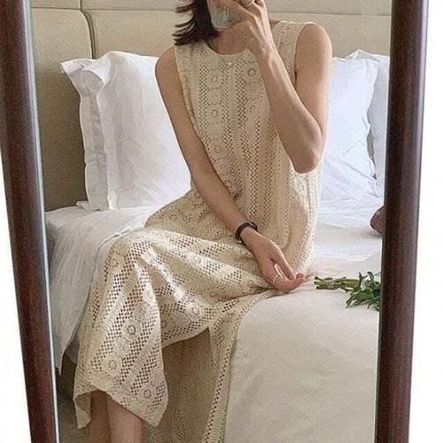 [모노무드]모노무드 여성 여름 니트 롱 원피스 민소매 나시 펀칭 휴양지