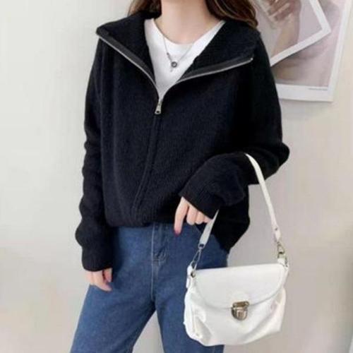 해피유통 여성 가을겨울 캐주얼 니트 가디건 후드 지퍼 디자인 큰 주머니 베이직 아우터