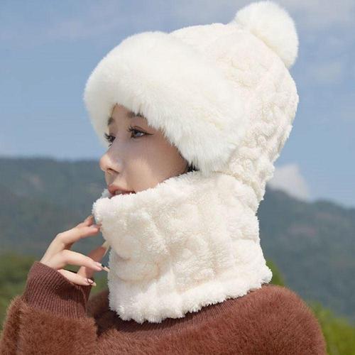 여성 겨울 기모 비니 목도리 세트 털방울 모자 WFFVYU4