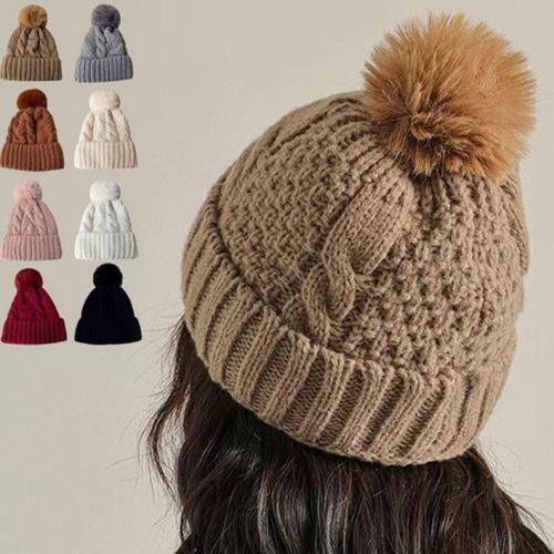 여성 겨울 방울 비니 꽈배기 니트 방한 퍼 안감 모자 WFFZJT0