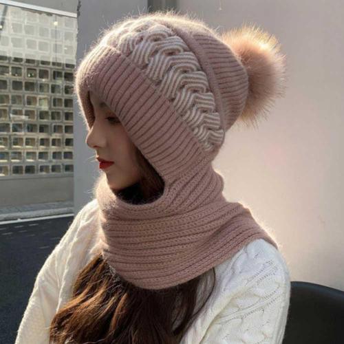 여성 6컬러 겨울 꽈배기 뽀글이 방울털 넥워머 모자 WFFZCRF