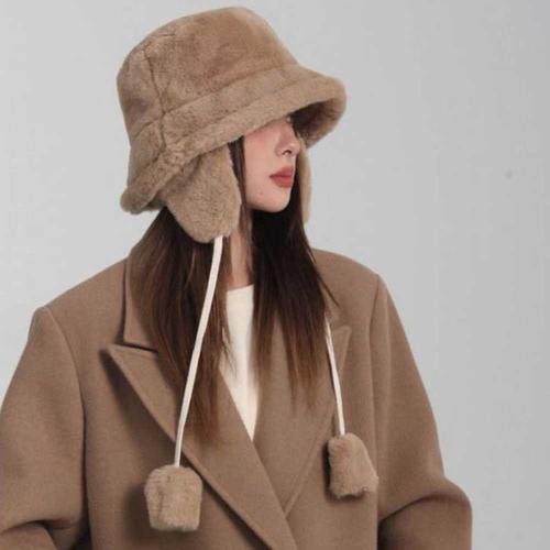 여성 겨울 양쪽 방울 비니 귀달이 방한 털모자 WFFZJSN