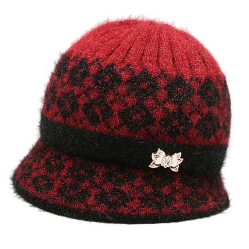 리본 마름모 패턴 캡비니 여성 겨울 모자 패션 WFFNK5W