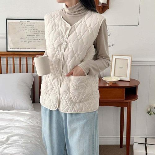 [셀럽하우스]겨울 DOQU7803 패션 스타일 단추 패딩 조끼 얇은 경량 스타일