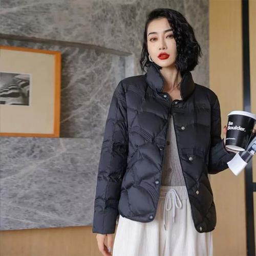 하이퀄 오리털 자켓 여성경량패딩 여성 방한 보온 덕다운 배색 카라 코트 패딩점퍼