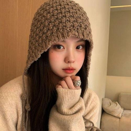 여자 귀여운 양쪽 끈 니트 귀달이 모자 겨울 WFFZJT5