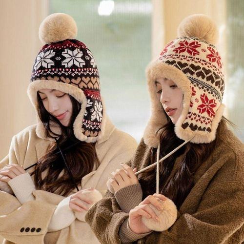 무늬 여성 스타일 눈꽃 외출 방울 모자 귀여운 귀달이 WFFVZV9