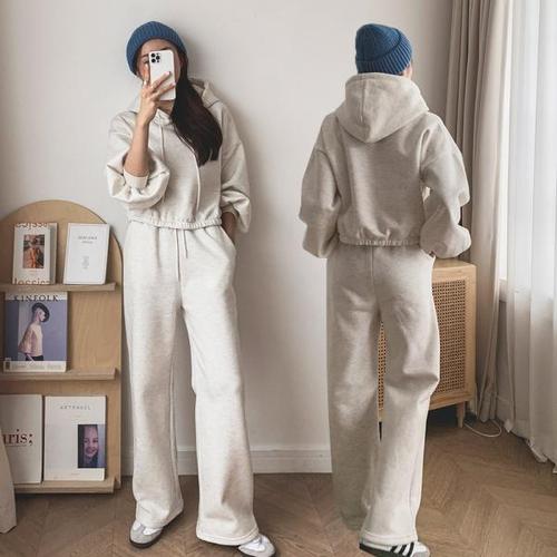[상하세트] 가비진 여성용 기모세트! 후드 기모 맨투맨+밴드 기모 일자 팬츠 바지 키작녀 트레이닝 세트
