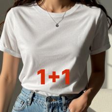 1+1 레이블링 여성용 기본 반팔티 티셔츠 반소매