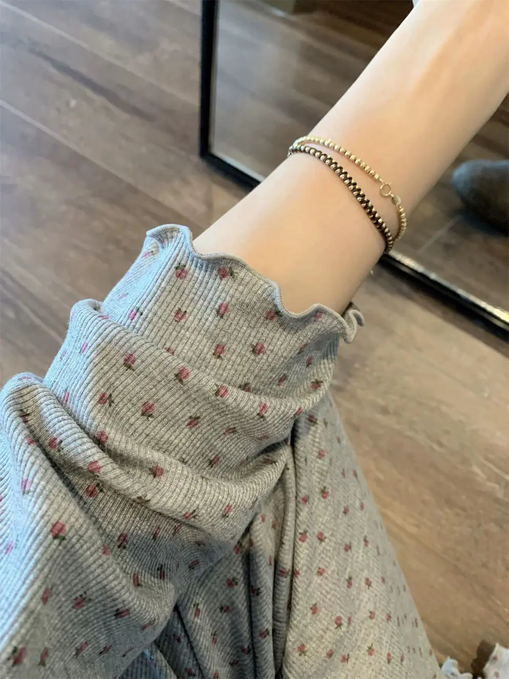 달콤한 꽃무늬 잠옷 캐주얼 긴 소매 긴 바지 홈웨어 투피스 세트 젊은 여성용 한국 스타일 봄 가을