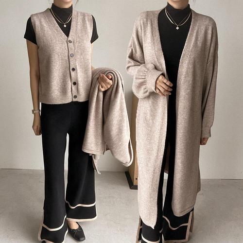[유야]여성 브이넥 조끼 니트 롱 가디건 세트 -FVC0141- 겨울