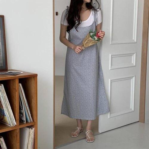 뷔스티에 롱니트 쉬폰 미디 온나핏 데님 여름 WFKOIR7