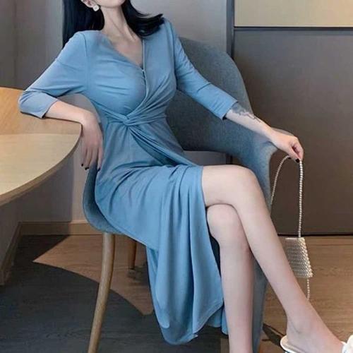 [엄지척]브이넥 롱 랩 디자인 다리 트임 여친룩_19913452_667501