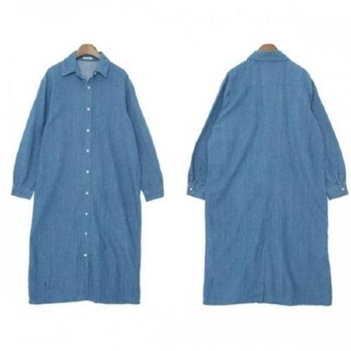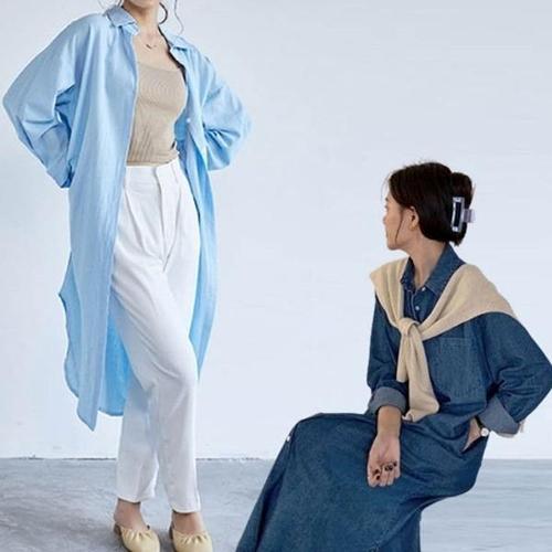 [오노마] ONM 여자 2컬러 캐주얼 봄 가을 롱셔츠 데님남방 청원피스