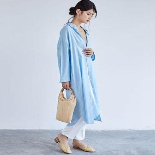 [다잇템]여자 옆트임 무지면 오버핏 청남방 롱원피스