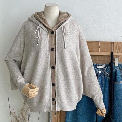 [신상오픈런]여성 심플한 톤다운 후드 스트링 롱 집업 가디건