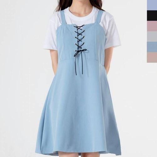 (제스트)린넨원피스 롱 청청셋업 리스트원피스 멜빵치마 데님