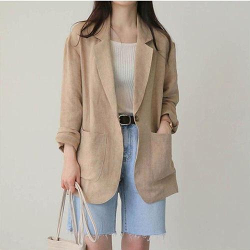 모던한 여성용 린넨 정장 자켓 가벼운 린넨 소재 여성용 아우터 트렌디 자켓 A라인 자켓