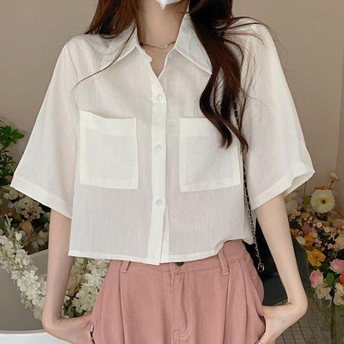 [셀럽하우스]루즈핏 YPMU9019 린넨 셔츠 반팔 캐주얼 크롭 데이트룩