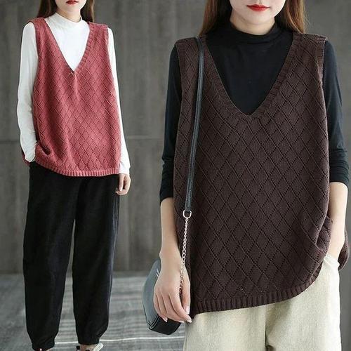 여성용 클래식 라이트웨이트 메쉬 울탑짜임 무늬 브이칼라 조끼