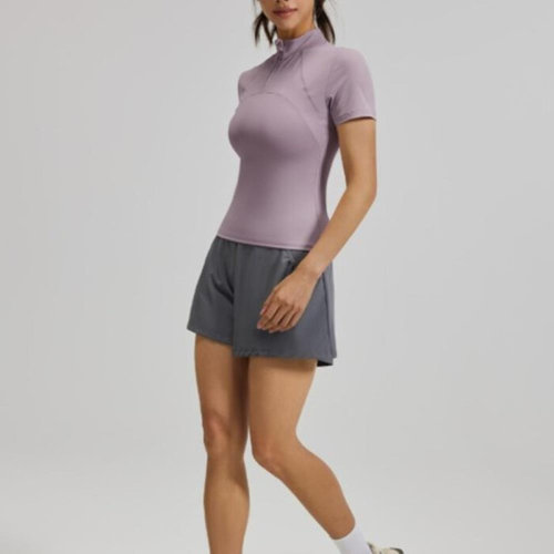 [옷자락]여성용 스포츠 반집업 스판 메쉬 반팔 티셔츠