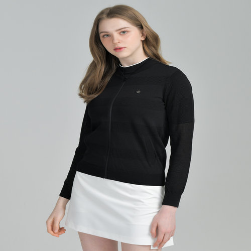 닥스 골프 여성 [PREMIUM] 블랙 메쉬 풀집업 캐쥬얼 니트 가디건 (DNSW5B415BK)