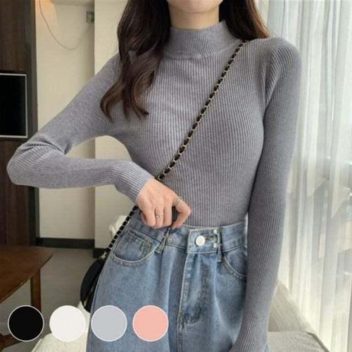 [에이치플러스몰]여자 반폴라 니트티 골지 슬림핏 겨울 티셔츠 목티 반목폴라 반폴라니트