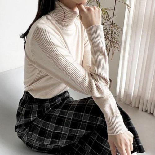 부드러운 여성 베이직 목폴라 니트 티셔츠 1P 긴팔 겨울 스타일
