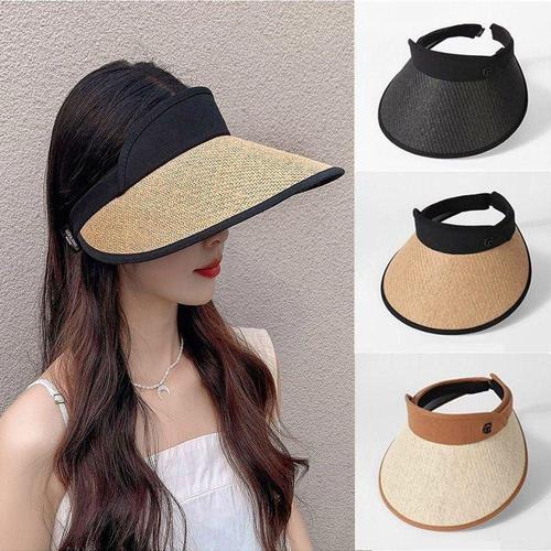차단 햇빛 선캡 여름 블랙코팅 모자 여자 내부 밀짚 WFLQ8WT