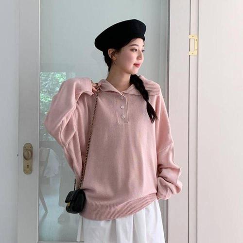 오버핏 카라넥 온나핏 노르딕니트 여성반팔니트