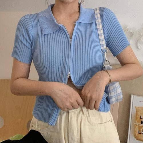 카라 니트 여름니트 크롭니트 온나핏 여성반팔니