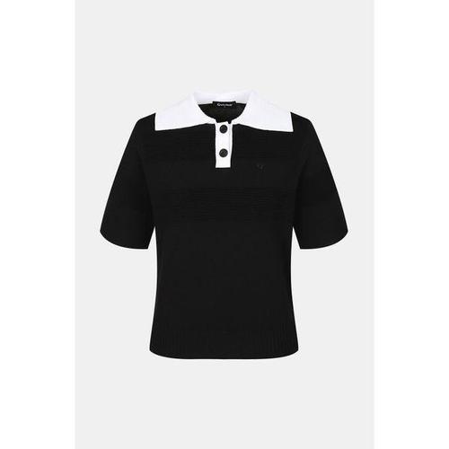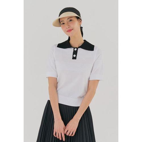 [테일러메이드]여성 배색 조직 변형 카라 반팔 니트 TWSRM6121-100