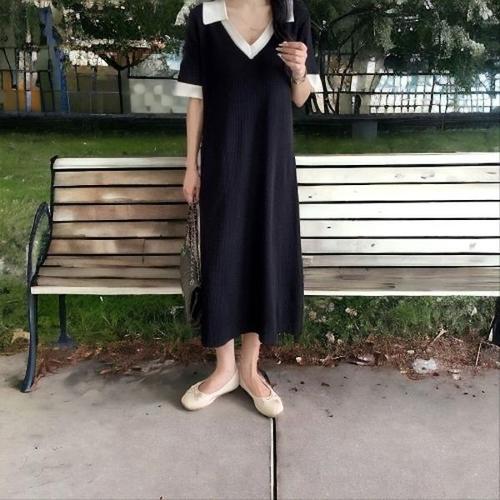 [엄지척]여자 단추카라니트롱원피스 여름반팔니트원피스 5컬러_19870606_667501